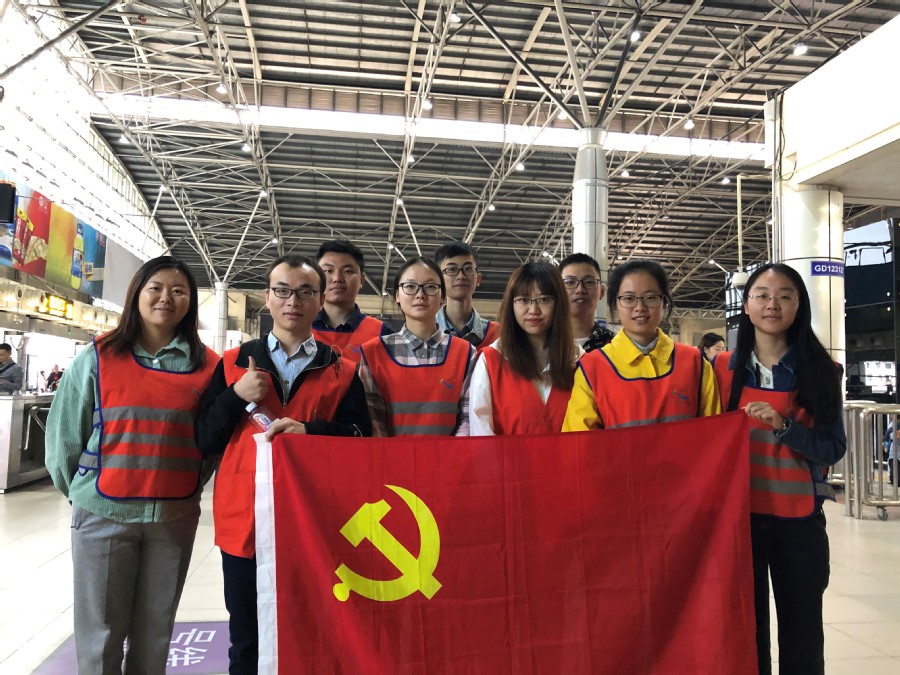 10月26日中午,必赢766net手机版本科生党支部学生党员利用周末时间,在支部书记、本科生辅导员黄蕊的带领下,来到上海市闵行区5号线莘庄地铁站参加志愿服务活动。