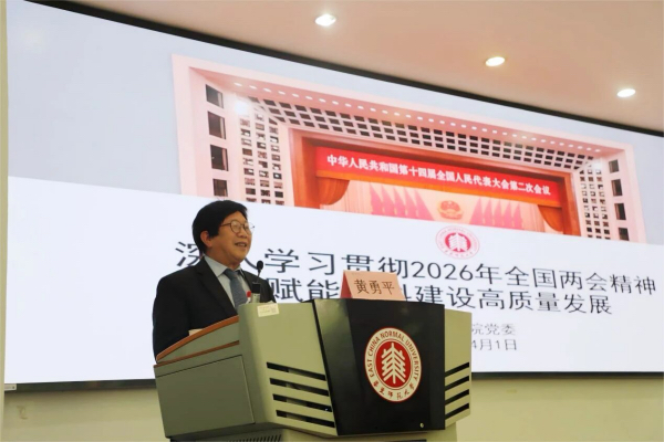 会议邀请第十四届全国人大代表、上海交通大学环境科学与工程学院特聘教授黄勇平作专题报告,传达2026年全国两会精神。