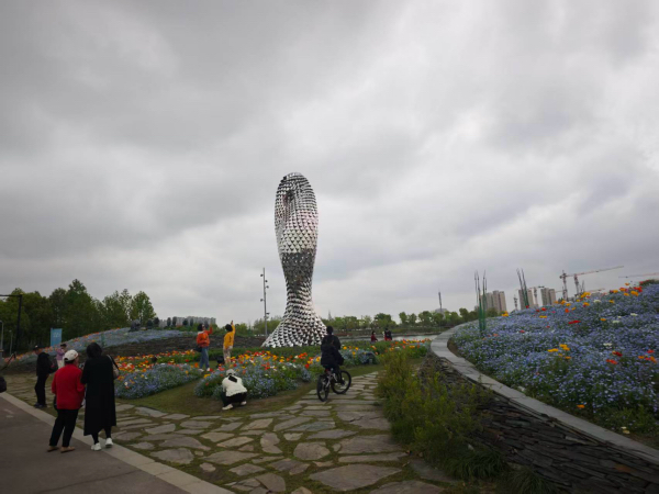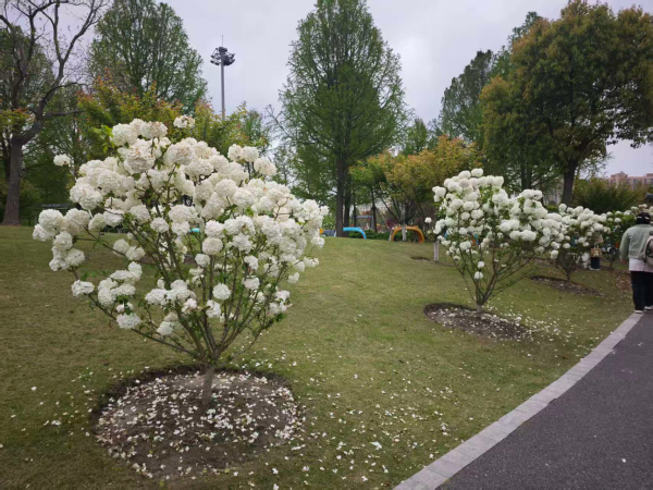 次日上午,一行人转赴上海之鱼泡泡公园。刚踏入园中,满眼绿意铺展、繁花竞放:白色的中华木绣球缀满枝头,如云似雪;银鱼雕塑旁水波粼粼,花海环绕。花香与草木清气扑面而来,每一步仿佛都踏在春日鲜活的生机里。