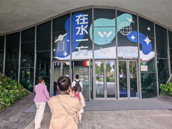 午后,一行人转至科幻馆。馆内变幻的光影勾勒出满满的未来感,科幻作品里的宇宙仿佛变成了可触碰的现实。