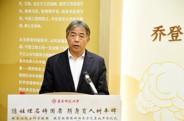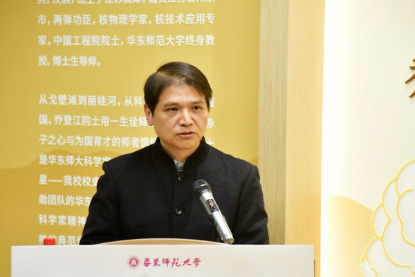 马余刚在致辞中回顾了乔登江院士赤诚报国的一生。他说,乔登江院士是我国核科学与技术领域的先驱者,也是一位深受爱戴的教育家。他的一生,始终围绕一个朴素而深刻的追问:“我能为国家做什么?”前半生,隐姓埋名铸国盾;后半生,躬身育人树丰碑——两段人生,同写一份报国答卷。这是科学报国、教育报国的生动写照,也是对华东师大“求实创造、为人师表”校训精神最深刻的诠释。马余刚号召全体师生以乔登江院士为榜样,弘扬报国初心,将心怀“国之大者”融入日常教学科研与学习实践,让科学报国、教育报国成为师生的自觉追求,在师大校园薪火相传。
