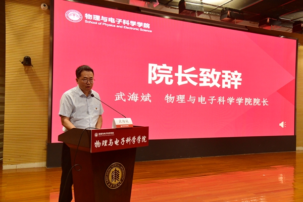 武海斌作开学典礼致辞。他指出,中华民族伟大复兴是一场浩荡征程,离不开科技的坚实支撑,而物理学正是支撑这一切的基石。他强调,在这个科技定义未来的时代,物理学的基础性地位,决定了“物理人”不仅是探索者,更是时代责任的承担者,被赋予了前所未有的重大使命。