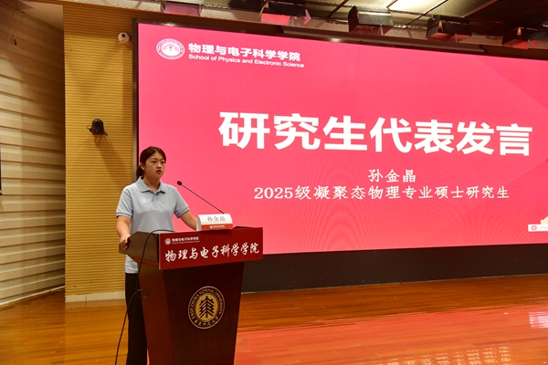 作为曾赴云南山区支教的过来人,硕士新生孙金晶同学首先向学院与师长表达诚挚感谢。她回忆道,在山区用物理知识启迪孩子的过程中,自己的科研信念愈发坚定。“读研之路或许充满挑战,但我会主动探索未知领域,肩负起科研使命,相信在师友的陪伴与支持下,定能突破难关、勇于创新,以奋斗书写属于‘物电人’的青春华章。”