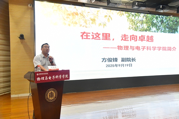 副院长方俊锋教授以《在这里,走向卓越》为题,为新生系统呈现学院历史沿革、学科结构、师资力量、科研平台、人才培养成果与发展目标,全面展示学院作为国内物理与电子领域重要教学科研基地的综合实力。